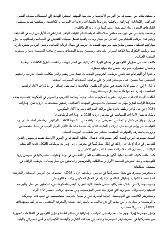 ﺔﻴﺒﻳرﺪﺘﻟاو ﺔﻴﻔﻴﻇﻮﻟا صﺮﻔﻟا ﻦﻣ ﺔﻋﻮﻤﺠﻣ ،«2025 ﺔﻳؤر» ﻒﺋﺎﻇﻮﻟا ضﺮﻌﻣ ﻓ ﺎﻬﺘﻛرﺎﺸﻣ لﻼﺧ ﺑد كرﺎﻤﺟ ضﺮﻌﺘﺴﺗو