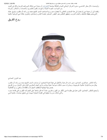 ﺪﯾﺪﻌﻟا ﻲﻓ ﻚﻟذو ةﺪﯾﺮﻓ ﺔﺼﻗ مﻮﯿﻟا ﻚﻠﺘﻤﺗ ﻲﺑد ﺔﻨﯾﺪﻣ نأ ،تارﺎﻣﻹا ﺔﻌﻣﺎﺠﺑ ﺔﻗﺎﻄﻟاو هﺎﯿﻤﻠﻟ ﻲﻨطﻮﻟا ﺰﻛﺮﻤﻟا ةﺮﯾﺪﻣ ،ﻲﺴﻣﺎﺸﻟا ﺮﻄﻣ لﻻد ﺖﺤﺿوأو