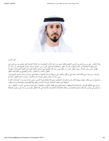 ﻲھ مﻮﯿﻟا ﻲﺑد ﺎﮭﺑ ﻰﻈﺤﺗ ﻲﺘﻟا ﺔﯿﻤﻟﺎﻌﻟا ﺔﻧﺎﻜﻤﻟا نإ ،ﺔﯿﻣﻮﻜﺤﻟا ةرادﻺﻟ ﺪﺷار ﻦﺑ ﺪﻤﺤﻣ ﺔﯿﻠﻜﻟ يﺬﯿﻔﻨﺘﻟا ﺲﯿﺋﺮﻟا ،يﺮﻤﻟا عﺎﺒﺳ ﻦﺑ ﻲﻠﻋ رﻮﺘﻛﺪﻟا لﺎﻗو