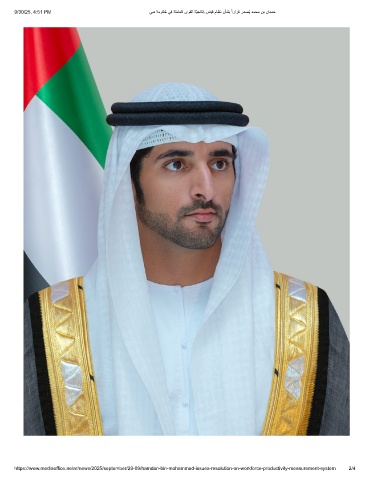 9/30/25, 4:51 PM ﻲﺑد ﺔﻣوﻛُﺣ ﻲﻓ ﺔﻠﻣﺎﻌﻟا ىوﻘﻟا ﺔّﯾﺟﺎﺗﻧإ سﺎﯾﻗ مﺎظﻧ نﺄﺷﺑ ًارارﻗ ردﺻُﯾ دﻣﺣﻣ نﺑ نادﻣﺣ https://www.mediaoffice.ae/ar/news/2025/september/29-09/hamdan-bin-mohammed-issues-resolution-on-workforce-productivity-measurement-system 2/4