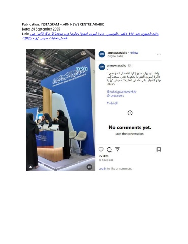 Publication: INSTAGRAM – ARN NEWS CENTRE ARABIC Date: 24 September 2025 ً ر - Link: لىع رابخلأا زكرم لىإ اثدحتم ،بد ةموكحل ةيشبلا دراوملا ةرئاد سسؤملا لاصتلاا ةرادإ ريدم ،يويديلا دشار ي ي ."2025 ةيؤر" ضرعم تايلاعف شماه
