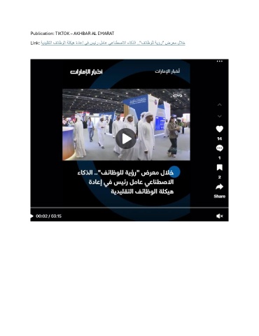 Publication: TIKTOK – AKHBAR AL EMARAT Link: ةيديلقتلا فئاظولا ةلكيه ةداعإ يف سيئر لماع يعانطصلاا ءاكذلا .."فئاظولل ةيؤر" ضرعم للاخ