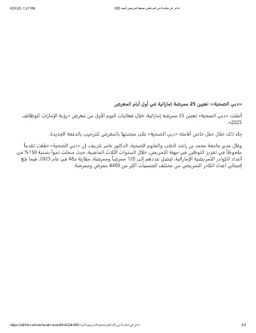 ﻒﺋﺎﻇﻮﻠﻟ تارﺎﻣإلا ﺔﻳؤر» ضﺮﻌﻣ ﻦﻣ لوألا مﻮﻴﻟا تﺎﻴﻟﺎﻌﻓ لالﺧ ،ﺔﻴﺗارﺎﻣإ ﺔﺿﺮﻤﻣ 25 ﻦﻴﻴﻌﺗ «ﺔﻴﺤﺼﻟا ﻲﺑد» ﺖﻨﻠﻋأ