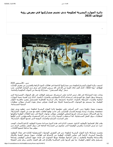 ﻒﯿظﻮﺘﻟا لﺎﺠﻣ ﻲﻓ ةرﺎﻣﻺﻟ ﺔﯿﻠﺒﻘﺘﺴﻤﻟا تﺎﮫﺟﻮﺘﻟا ضﺮﻌﻤﻟا ﻲﻓ ﻲﺑد ﺔﻣﻮﻜﺤﻟ ﺔﻳﺮﺸﺒﻟا دراﻮﻤﻟا ةﺮﺋاد ﺔﻛرﺎﺸﻣ ﺪﺴﺠﺗو