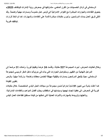 «2025 فﺋﺎظوﻠﻟ تارﺎﻣﻹا ﺔﯾؤر ضرﻌﻣ» ﻲﻓ ﺎﮭﺗﻛرﺎﺷﻣ ،ﻲﺿﺎﻣﻟا نرﻘﻟا نﻣ تﺎﻧﯾﺳﻣﺧﻟا لﺋاوأ ﻲﻓ ﻲﻧﺎﻣﺗﺳرﻟا