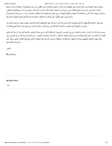 9/29/25, 3:22 PM 2025 فﺋﺎظوﻠﻟ ﺔﯾؤر ضرﻌﻣ ﻲﻓ ﺎﮭﺗﻛرﺎﺷﻣ مﺗﺗﺧﺗ ﻲﺑد ﺔﻣوﻛﺣﻟ ﺔﯾرﺷﺑﻟا دراوﻣﻟا ةرﺋاد