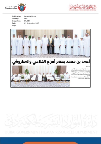 Publication: Emarat Al Youm Country: UAE Circulation: 80,000 Date: 01 September 2025 Page: 17
