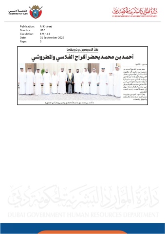 Publication: Al Khaleej Country: UAE Circulation: 121,141 Date: 01 September 2025 Page: 5