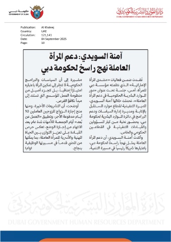 Publication: Al Khaleej Country: UAE Circulation: 121,141 Date: 04 September 2025 Page: 10