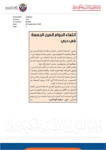 Publication: Al Bayan Country: UAE Circulation: 88,000 Date: 09 September 2025 Page: 1