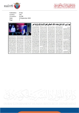 Publication: Al Fajr Country: UAE Circulation: 34,596 Date: 19 September 2025 Page: 7
