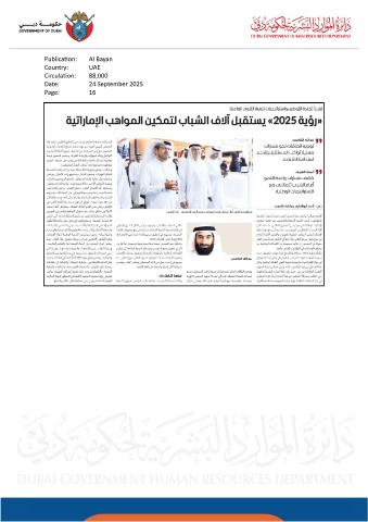 Publication: Al Bayan Country: UAE Circulation: 88,000 Date: 24 September 2025 Page: 16