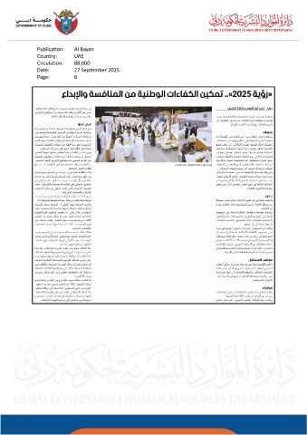 Publication: Al Bayan Country: UAE Circulation: 88,000 Date: 27 September 2025 Page: 6