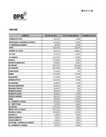WEBSITE VALUE (IN AED) TOTAL MEDIA REACH NUMBER OF HITS