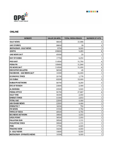 WEBSITE VALUE (IN AED) TOTAL MEDIA REACH NUMBER OF HITS