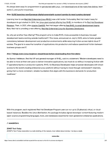 7/10/25, 8:53 AM Red Hat just expanded free access to RHEL for business developers | ZDNET