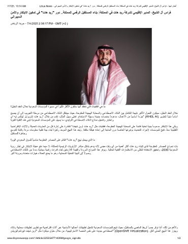 7/7/25, 10:14 AM Libya News - ﻲﻧارﺑﯾﺳﻟا نﻣﻷاو رﺎﻛﺗﺑﻻا نﯾﻛﻣﺗ ﻲﻓ "تﺎھ دﯾر" رود ..ﺔﻛﻠﻣﻣﻠﻟ ﻲﻣﻗرﻟا لﺑﻘﺗﺳﻣﻟا ءﺎﻧﺑ :ﺔﻛﻠﻣﻣﻟا ﻲﻓ تﺎھ دﯾر ﺔﻛرﺷﻟ ﻲﻣﯾﻠﻗﻹا رﯾدﻣﻟا ،ﺦﯾﺷﻟا لآ سارﻓ - ﺎﯾﺑﯾﻟ رﺎﺑﺧأ