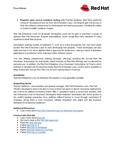 ● Learn more about Red Hat Enterprise Linux for Business Developers