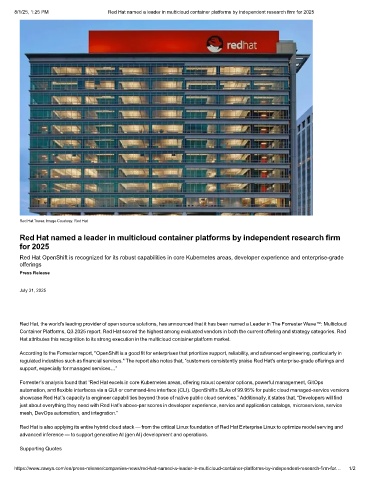 8/1/25, 1:25 PM Red Hat named a leader in multicloud container platforms by independent research firm for 2025