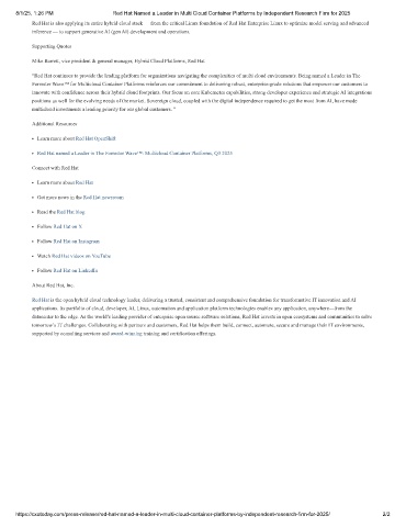 8/1/25, 1:26 PM Red Hat Named a Leader in Multi Cloud Container Platforms by Independent Research Firm for 2025