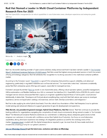 https://www.analyticsinsight.net/press-release/red-hat-named-a-leader-in-multi-cloud-container-platforms-by-independent-research-firm-for-2025 1/2