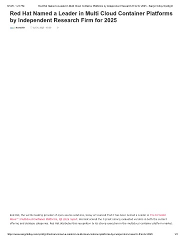 8/1/25, 1:27 PM Red Hat Named a Leader in Multi Cloud Container Platforms by Independent Research Firm for 2025 - Sangri Today Spotlight