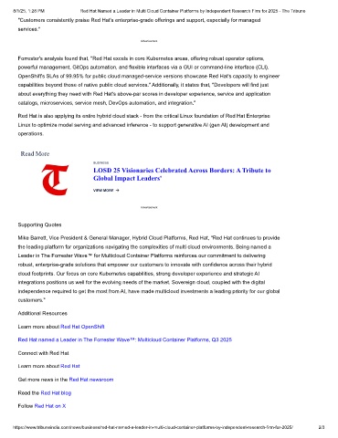 8/1/25, 1:28 PM Red Hat Named a Leader in Multi Cloud Container Platforms by Independent Research Firm for 2025 - The Tribune