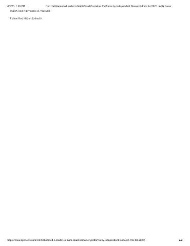 8/1/25, 1:28 PM Red Hat Named a Leader in Multi Cloud Container Platforms by Independent Research Firm for 2025 - APN News