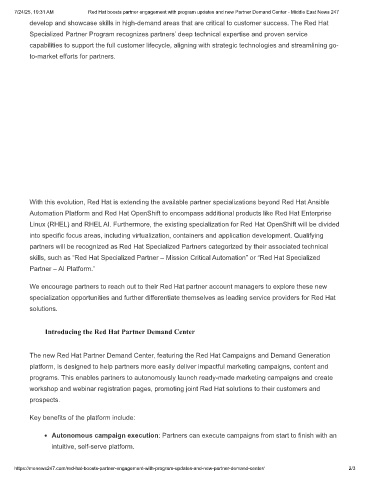 7/24/25, 10:31 AM Red Hat boosts partner engagement with program updates and new Partner Demand Center - Middle East News 247