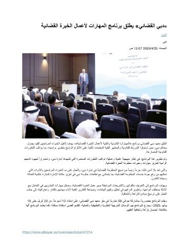 ةيئاضقلا ةربخلا لامعلأ تاراهملا جمانرب قلطي »يئاضقلا يبد «