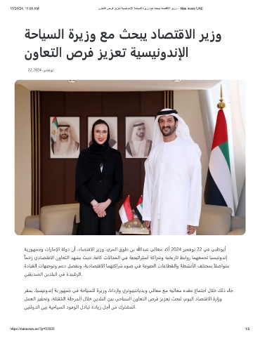 11/26/24, 11:05 AM نوﺎﻌﺗﻟا صرﻓ زﯾزﻌﺗ ﺔﯾﺳﯾﻧودﻧﻹا ﺔﺣﺎﯾﺳﻟا ةرﯾزو ﻊﻣ ثﺣﺑﯾ دﺎﺻﺗﻗﻻا رﯾزو – Nas news UAE