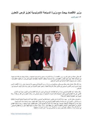 ةيجيتارتسا ةكارشو ةيخيرات طباور امهعمجت ايسينودنإ ةيروهمجو تاراملإا ةلود نأ ،داصتقلاا ريزو ،يرملا قوط نب اللهدبع يلاعم دكأ