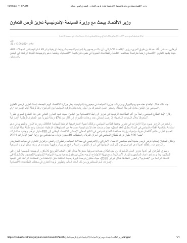 11/26/24, 11:07 AM رﺷﺎﺑﻣ - موﯾﻟا يرﺻﻣﻟا - نوﺎﻌﺗﻟا صرﻓ زﯾزﻌﺗ ﺔﯾﺳﯾﻧودﻧﻹا ﺔﺣﺎﯾﺳﻟا ةرﯾزو ﻊﻣ ثﺣﺑﯾ دﺎﺻﺗﻗﻻا رﯾزو