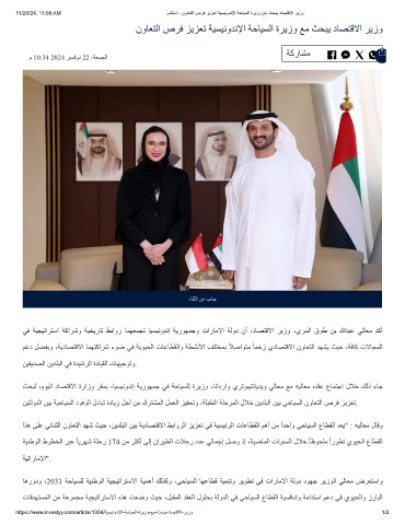 11/26/24, 11:09 AM رﻣﺛﺗﺳا - نوﺎﻌﺗﻟا صرﻓ زﯾزﻌﺗ ﺔﯾﺳﯾﻧودﻧﻹا ﺔﺣﺎﯾﺳﻟا ةرﯾزو ﻊﻣ ثﺣﺑﯾ دﺎﺻﺗﻗﻻا رﯾزو