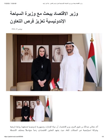 11/26/24, 11:09 AM دﻧﯾرﺗ روﻓ ﻼﯾ - نوﺎﻌﺗﻟا صرﻓ زﯾزﻌﺗ ﺔﯾﺳﯾﻧودﻧﻹا ﺔﺣﺎﯾﺳﻟا ةرﯾزو ﻊﻣ ثﺣﺑﯾ دﺎﺻﺗﻗﻻا رﯾزو