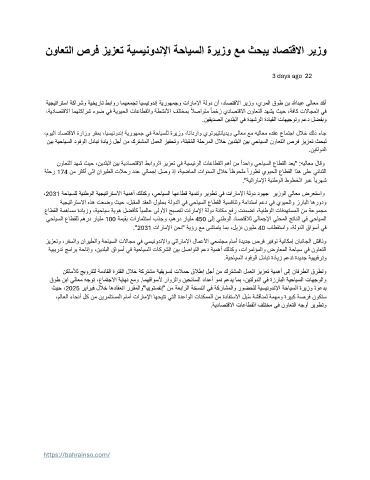 نواعتلا صرف زيزعت ةيسينودنلإا ةحايسلا ةريزو عم ثحبي داصتقلاا ريزو