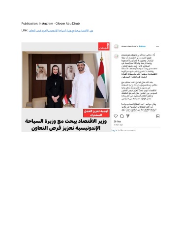 Publication: Instagram - Oloom Abu Dhabi Link: نواعتلا صرف زيزعت ةيسينودنلإا ةحايسلا ةريزو عم ثحبي داصتقلاا ريزو