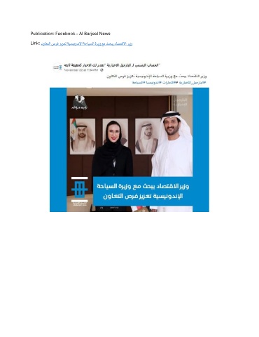 Publication: Facebook – Al Barjeel News Link: نواعتلا صرف زيزعت ةيسينودنلإا ةحايسلا ةريزو عم ثحبي داصتقلاا ريزو