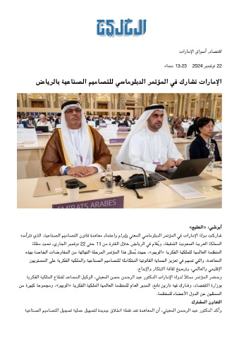 ﻪﺳأﺮﺘﺗ يﺬﻟا ،ﺔﻴﻋﺎﻨﺼﻟا ﻢﻴﻣﺎﺼﺘﻟا نﻮﻧﺎﻗ ةﺪﻫﺎﻌﻣ دﺎﻤﺘﻋاو ماﺮﺑﺈﺑ ﻨﻌﻤﻟا ﺳﺎﻣﻮﻠﺑﺪﻟا ﺮﻤﺗﺆﻤﻟا ﻓ تارﺎﻣﻹا ﺔﻟود ﺖﻛرﺎﺷ