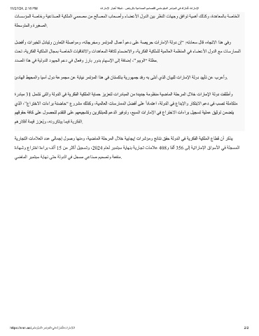 ةدﺎﮭﺷو عاﺮﺘﺧا ةءاﺮﺑ ﻒﻟأ 15 ﻦﻣ ﺮﺜﻛأ ﻞﯿﺠﺴﺗو ،2024 مﺎﻌﻟ ﺮﺒﻤﺘﺒﺳ ﺔﯾﺎﮭﻨﺑ ﺔﯾرﺎﺠﺗ تﺎﻣﻼﻋ 408و ﺎﻔﻟأ 356 ﻰﻟإ ﺔﯿﺗارﺎﻣﻹا قاﻮﺳﻷا ﻲﻓ ﺔﻠﺠﺴﻤﻟا