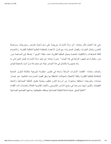 ﺔﻠﺻاﻮﻣو ،ﮫﺗﺎﺟﺮﺨﻣو ﺮﻤﺗﺆﻤﻟا لﺎﻤﻋأ ﻢﻋد ﻰﻠﻋ ﺔﺼﯾﺮﺣ تارﺎﻣﻹا ﺔﻟود نإ“ :ﮫﺗدﺎﻌﺳ لﺎﻗ ،هﺎﺠﺗﻻا اﺬھ ﻲﻓو