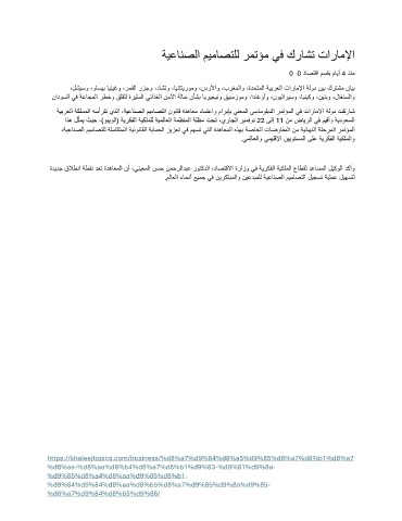 ةيبرعلا ةكلمملا هسأرتت يذلا ،ةيعانصلا ميماصتلا نوناق ةدهاعم دامتعاو ماربإب ينعملا يسامولبدلا رمتؤملا يف تاراملإا ةلود تكراش