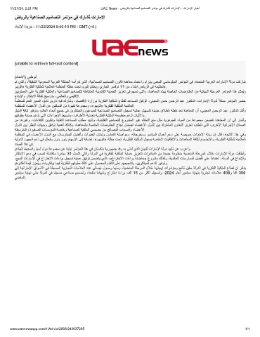 11/27/24, 2:21 PM                         UAE News - ضﺎﯾرﻟﺎﺑ ﺔﯾﻋﺎﻧﺻﻟا مﯾﻣﺎﺻﺗﻟا رﻣﺗؤﻣ ﻲﻓ كرﺎﺷُﺗ تارﺎﻣﻹا - تارﺎﻣﻹا رﺎﺑﺧأ
