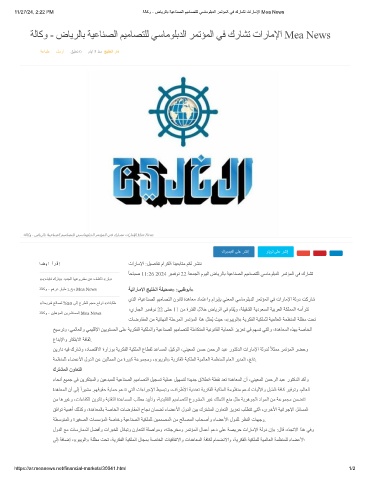 11/27/24, 2:22 PM                         ﺔﻟﺎﻛو - ضﺎﯾرﻟﺎﺑ ﺔﯾﻋﺎﻧﺻﻟا مﯾﻣﺎﺻﺗﻠﻟ ﻲﺳﺎﻣوﻠﺑدﻟا رﻣﺗؤﻣﻟا ﻲﻓ كرﺎﺷﺗ تارﺎﻣﻹا Mea News