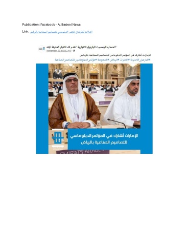 Publication: Facebook – Al Barjeel News ُ Link: ضايرلاب ةيعانصلا ميماصتلل ي سامولبدلا رمتؤلما يف كراشت تاراملإا