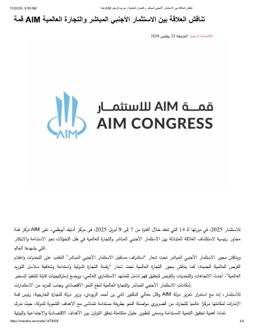 11/26/24, 9:58 AM ﺔﻣﻗ AIM نطوﻟا ةدﯾرﺟ › ﺔﯾﻣﻟﺎﻌﻟا ةرﺎﺟﺗﻟاو رﺷﺎﺑﻣﻟا ﻲﺑﻧﺟﻷا رﺎﻣﺛﺗﺳﻻا نﯾﺑ ﺔﻗﻼﻌﻟا شﻗﺎﻧﺗ