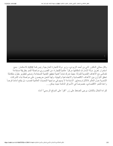 11/26/24, 9:59 AM ﺔﻣﻗ | ﺔﯾﺗارﺎﻣﻹا دﺎﺣﺗﻻا ﺔﻔﯾﺣﺻ «AIM» ﺔﯾﻣﻟﺎﻌﻟا ةرﺎﺟﺗﻟاو رﺷﺎﺑﻣﻟا ﻲﺑﻧﺟﻷا رﺎﻣﺛﺗﺳﻻا نﯾﺑ ﺔﻗﻼﻌﻟا شﻗﺎﻧﺗ