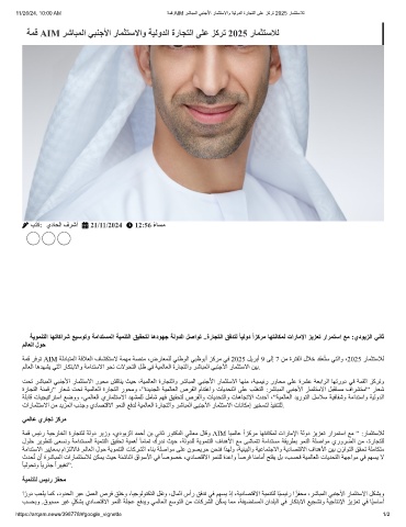 11/26/24, 10:00 AM ﺔﻣﻗ AIM رﺷﺎﺑﻣﻟا ﻲﺑﻧﺟﻷا رﺎﻣﺛﺗﺳﻻاو ﺔﯾﻟودﻟا ةرﺎﺟﺗﻟا ﻰﻠﻋ زﻛرﺗ 2025 رﺎﻣﺛﺗﺳﻼﻟ
