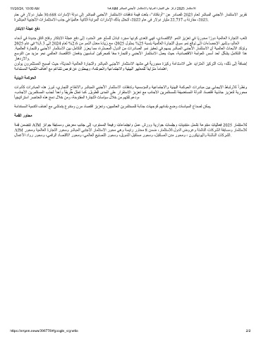 11/26/24, 10:00 AM ﺔﻣﻗ AIM رﺷﺎﺑﻣﻟا ﻲﺑﻧﺟﻷا رﺎﻣﺛﺗﺳﻻاو ﺔﯾﻟودﻟا ةرﺎﺟﺗﻟا ﻰﻠﻋ زﻛرﺗ 2025 رﺎﻣﺛﺗﺳﻼﻟ