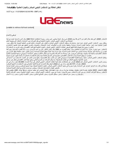 11/26/24, 10:00 AM UAE News - ﺔﻣﻗ - تارﺎﻣﻹا رﺎﺑﺧأ«AIM» ﺔﯾﻣﻟﺎﻌﻟا ةرﺎﺟﺗﻟاو رﺷﺎﺑﻣﻟا ﻲﺑﻧﺟﻷا رﺎﻣﺛﺗﺳﻻا نﯾﺑ ﺔﻗﻼﻌﻟا شﻗﺎﻧﺗ